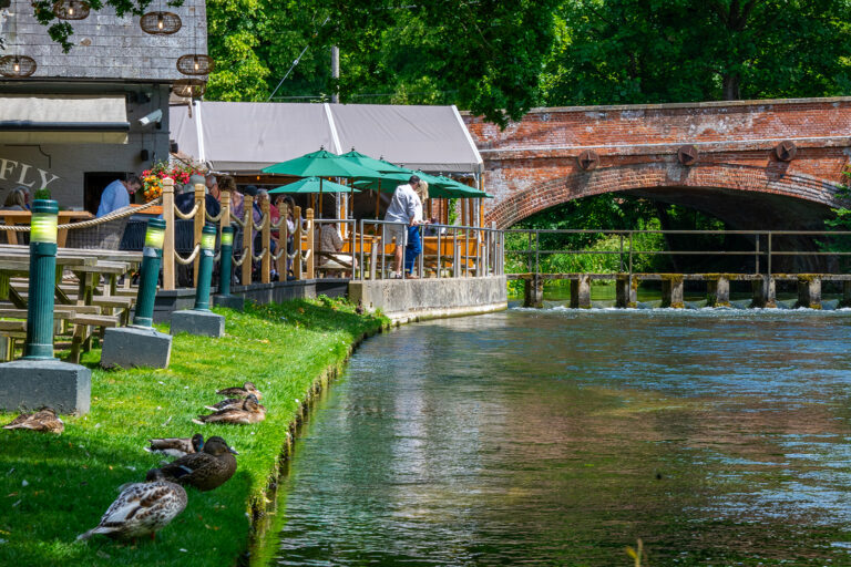 With breath-taking views over the world famous river Test and large trout slurping up flies right beside your picnic table, this riverside Fuller’s pub is a must-do for foodie fly fisherfolk exploring the Hampshire chalk streams.
