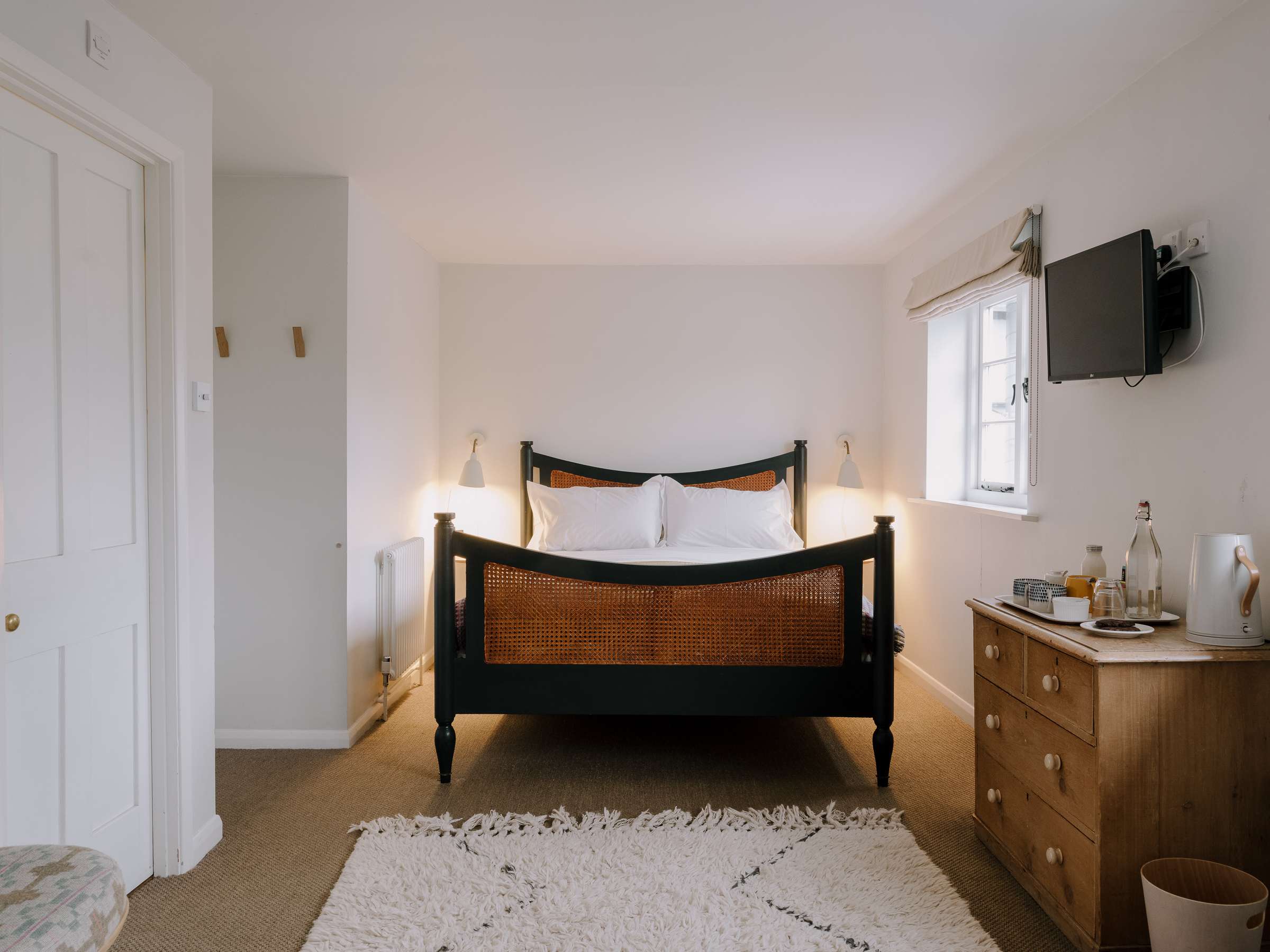Rooms are above the pub and a nearby outbuilding. Expect proper beds, crisp linen, and modern bathrooms. They’re the sort of rooms designed for comfortable sleep rather than theatrics, just what you need after a day on the river. Service follows the same philosophy: friendly, unfussy and rooted in local knowledge. Arrive with wet boots, dogs, fishing gear or none of the above — you’ll be welcomed the same.
