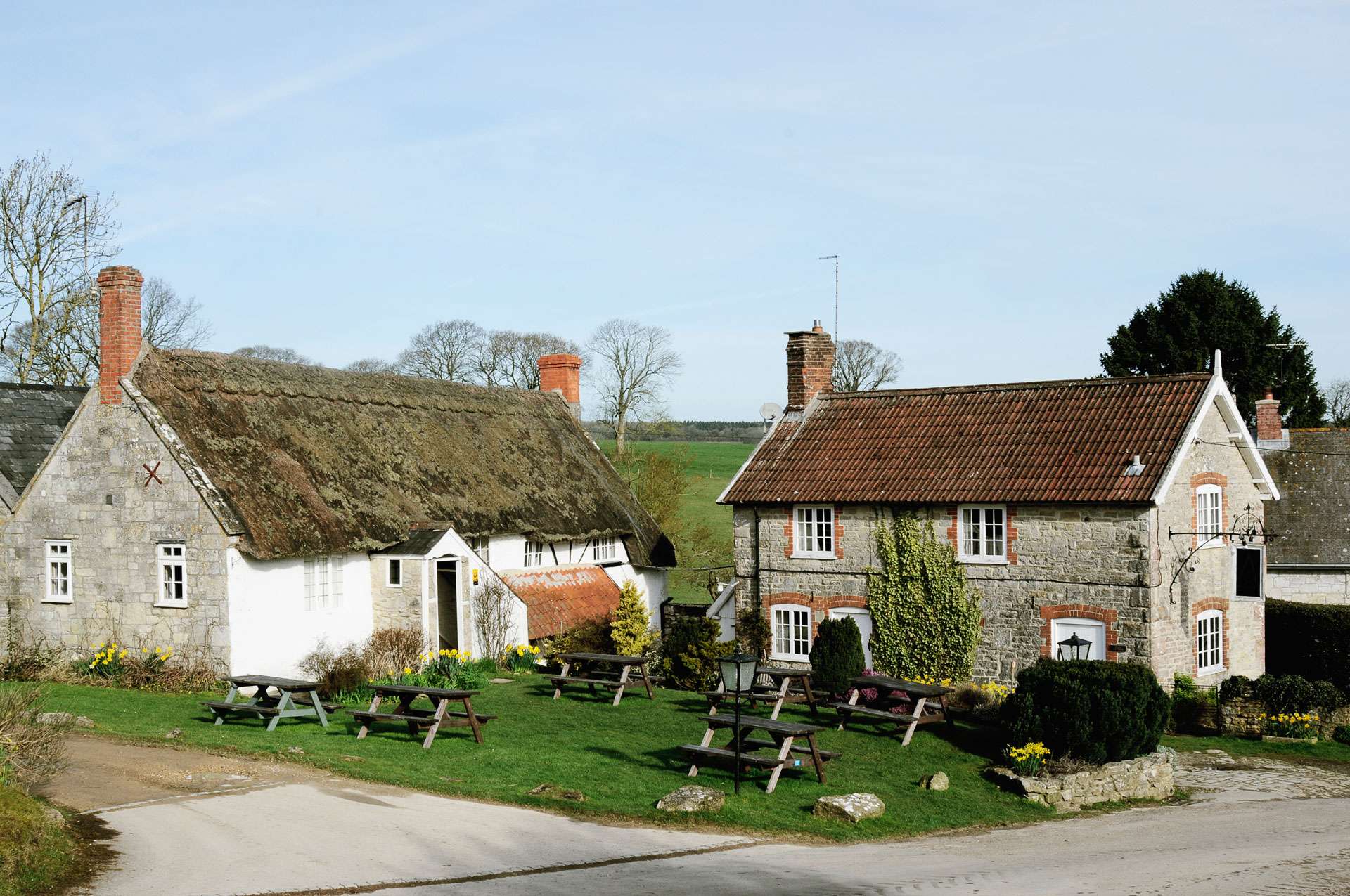 The inn sits in one of the prettiest pockets of the Nadder Valley, midway between Salisbury and the Cranborne Chase. Hills, meadows and wooded combes wrap the hamlet of Lower Chicksgrove on all sides.