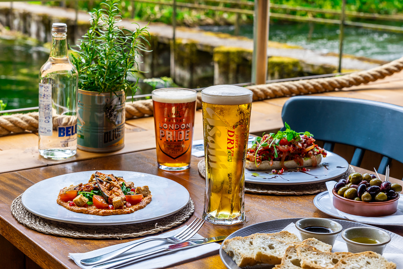 At the bar, drinks are an array of locally brewed ales on draft, and the full selection of wines including some of Hampshire’s own vineyards. If you need to get back to the river with at least one good casting arm, there is also a good range of ginger beer, juices and other soft drinks.