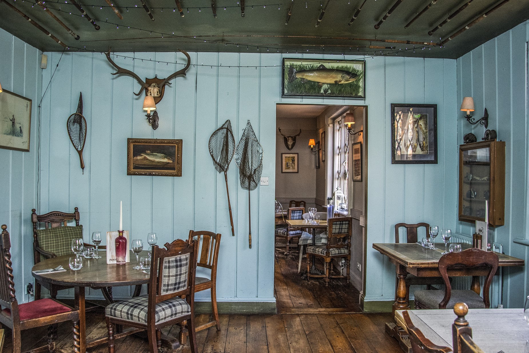 Unpretentious with bubbly and welcoming staff, the atmosphere is always relaxed, just what you would expect from a sleepy thatched fishing village. Inside, there are hardwood floors, low oak beams, and wood-panelled walls adorned with fishing memorabilia, and hung with paintings celebrating local history and fly fishing heritage. The rooms are uniquely rustic and furnished to lean into that chic country appeal. There’s a fully-equipped bar serving all the best local brewers and astragal windows let plenty of natural light into well-spaced adjoining dining spaces. Out back, a large terrace has an outdoor oven with sheltered seating which makes for a cosy space for a group of friends.