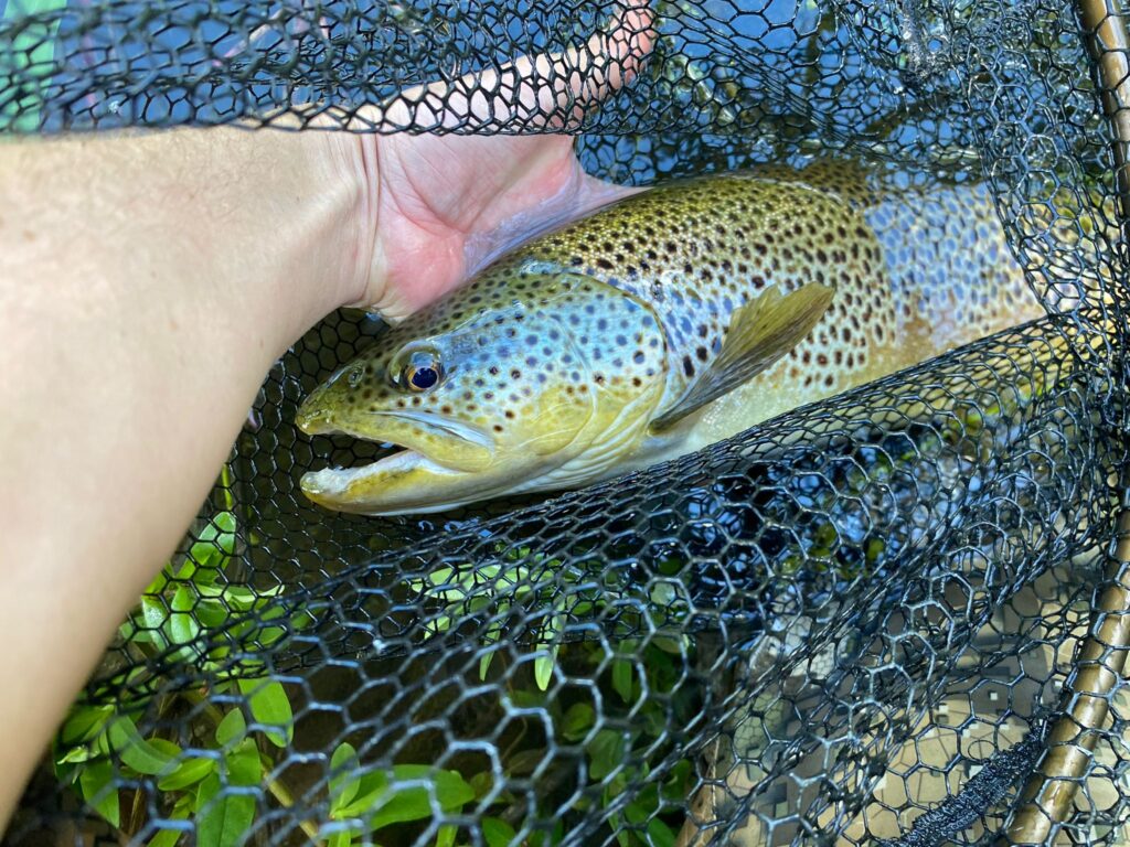 A large wild brown trout caught from the Oakley beat, summer 2025.