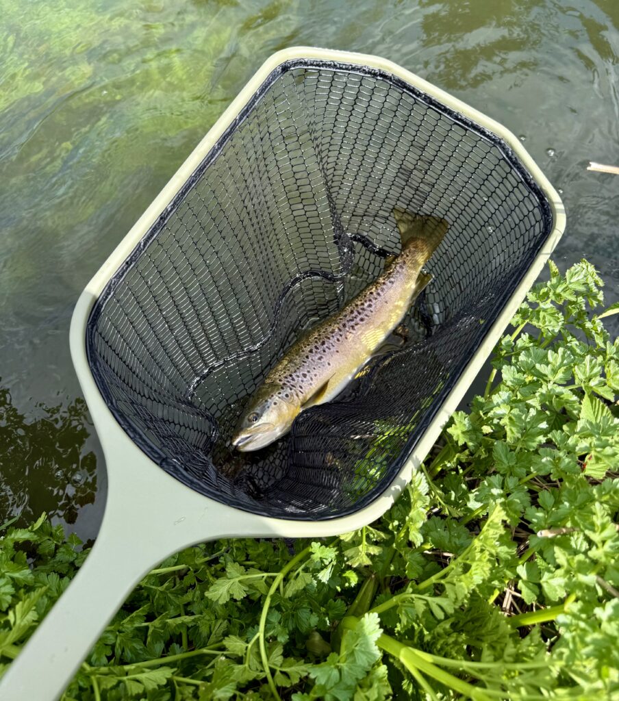On Saturday, I guided John and his friends from London on their very first trout fly fishing experience at Wherwell Lake. They were a group of complete beginners so this was rather in preparation for the next day, when we would visit the River Test. The weather was gloriously bright, hot and sunny, a very welcome change from the blustery conditions when I had recorded the latest podcast a few days prior! It was a lovely day and in between a pub lunch at the Mayfly Inn at Fullerton, we caught plenty of well-deserved fish.